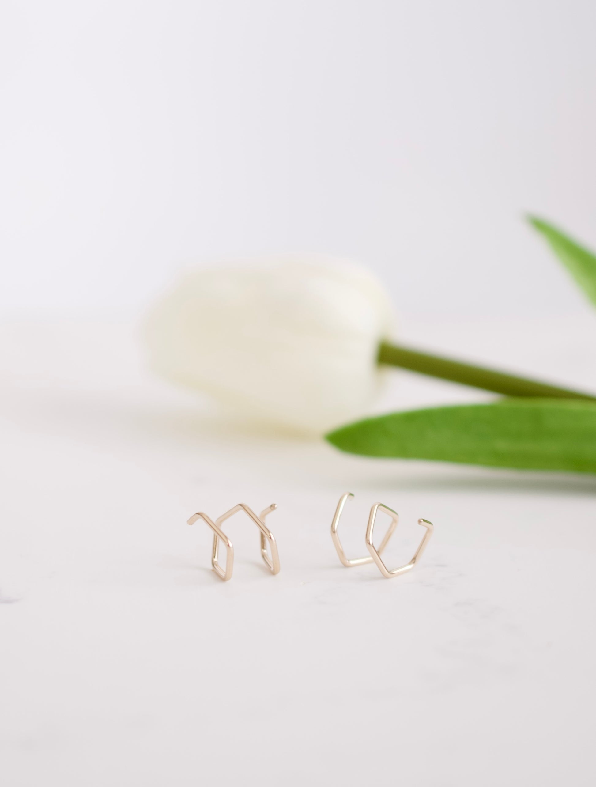 Effortlessly stylish, these gold twist earrings are designed to thread through two piercings for a unique, modern look. Versatile enough for a single piercing as well, they’re handcrafted with 14k gold fill for everyday elegance.