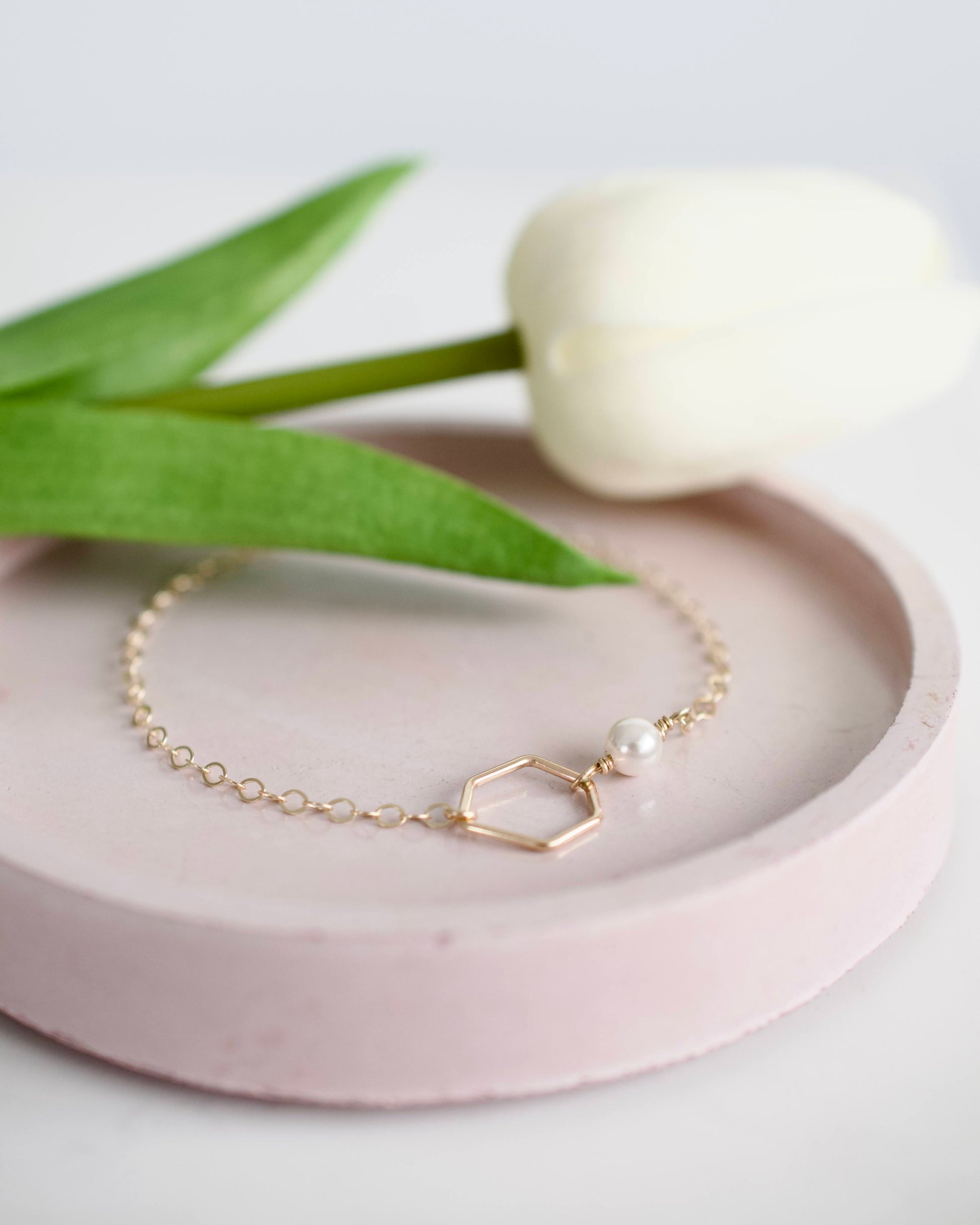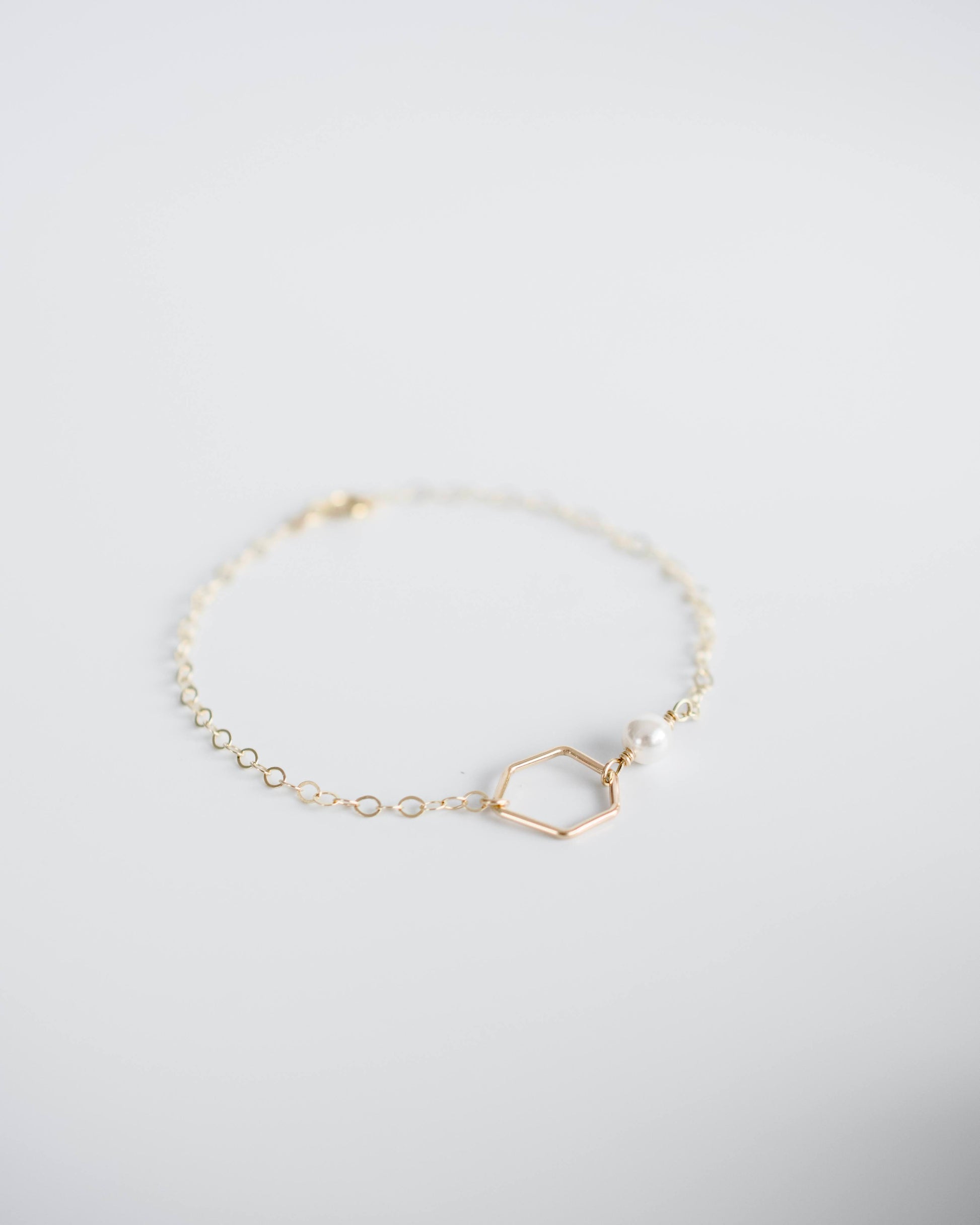 Delicate and timeless, this chain bracelet is handcrafted with 14k gold fill and a delicate pearl accent. Designed to be worn alone or paired with another bracelet or wristwatch, it’s the perfect addition to any jewelry collection.