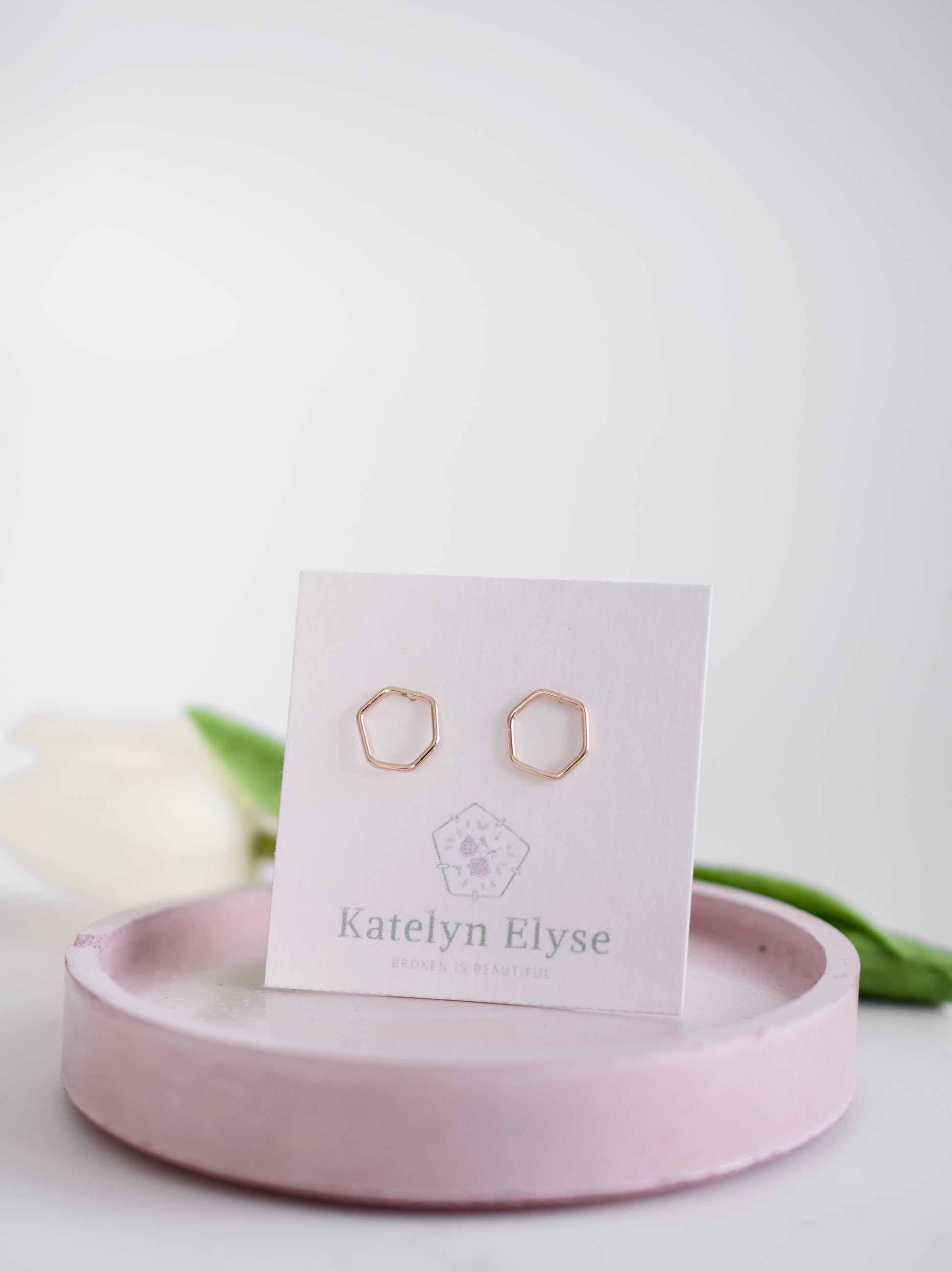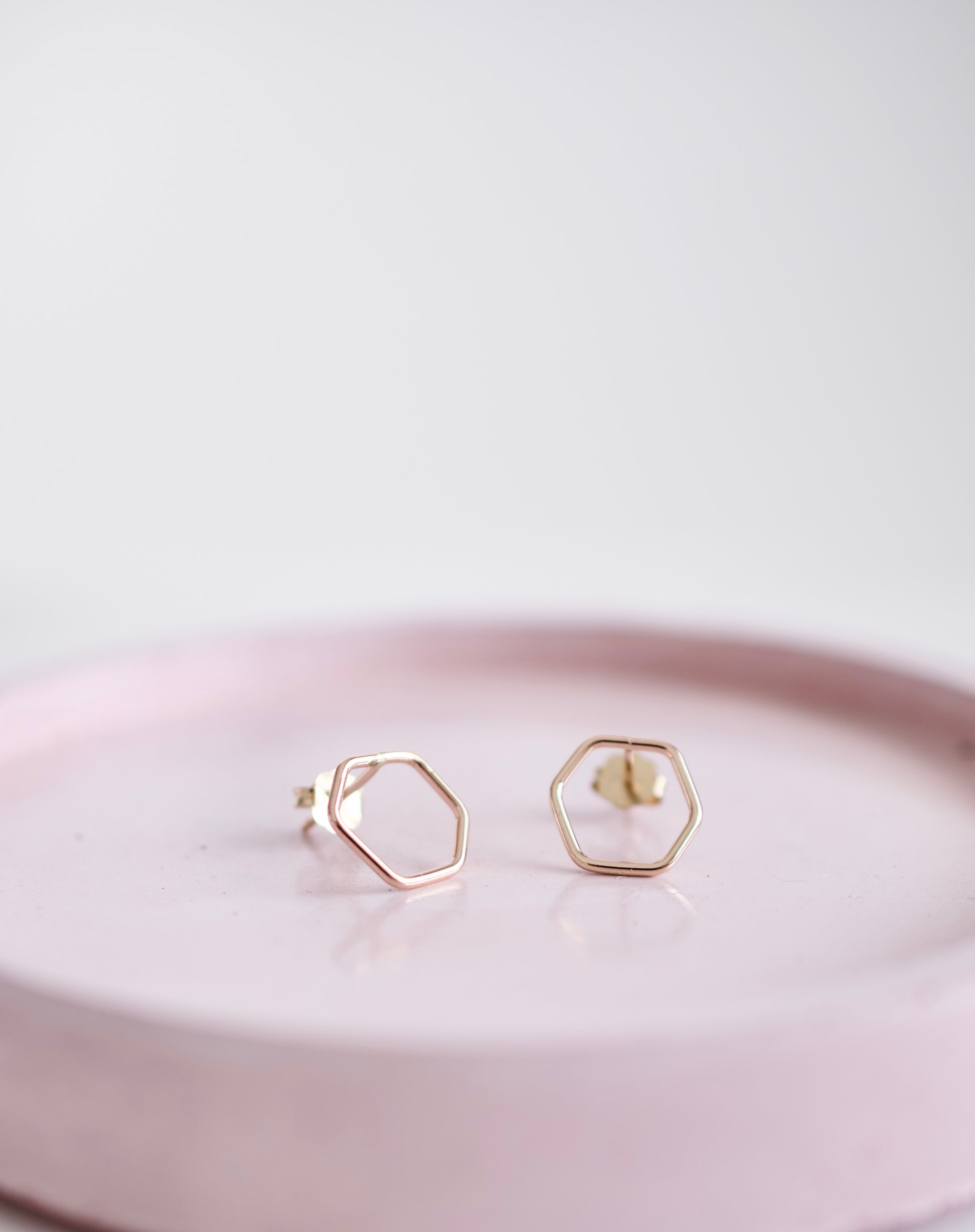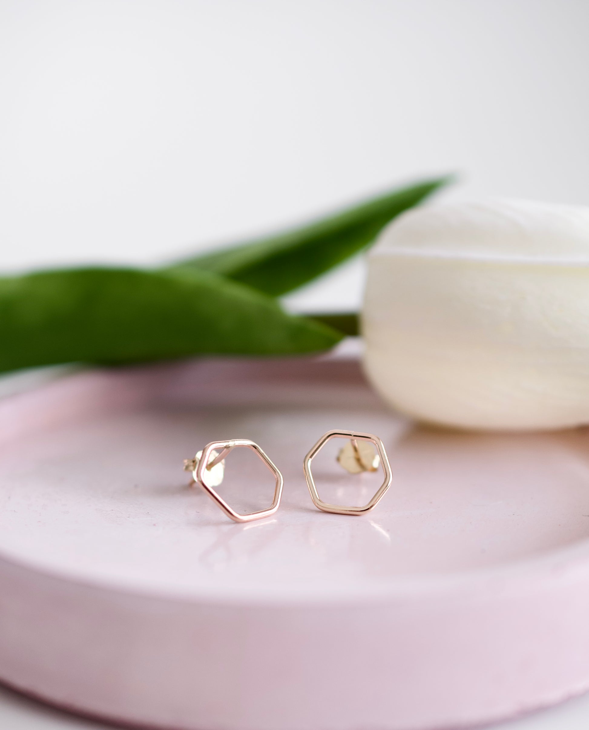 A modern take on a classic, these dainty gold stud earrings add effortless elegance to any look. Uniquely shaped yet timeless, they’re handcrafted with 14k gold fill for everyday wear.