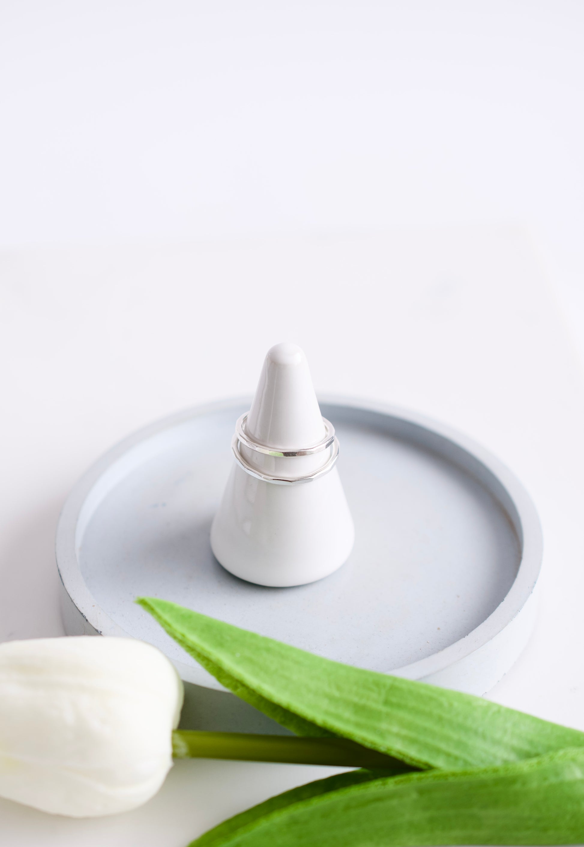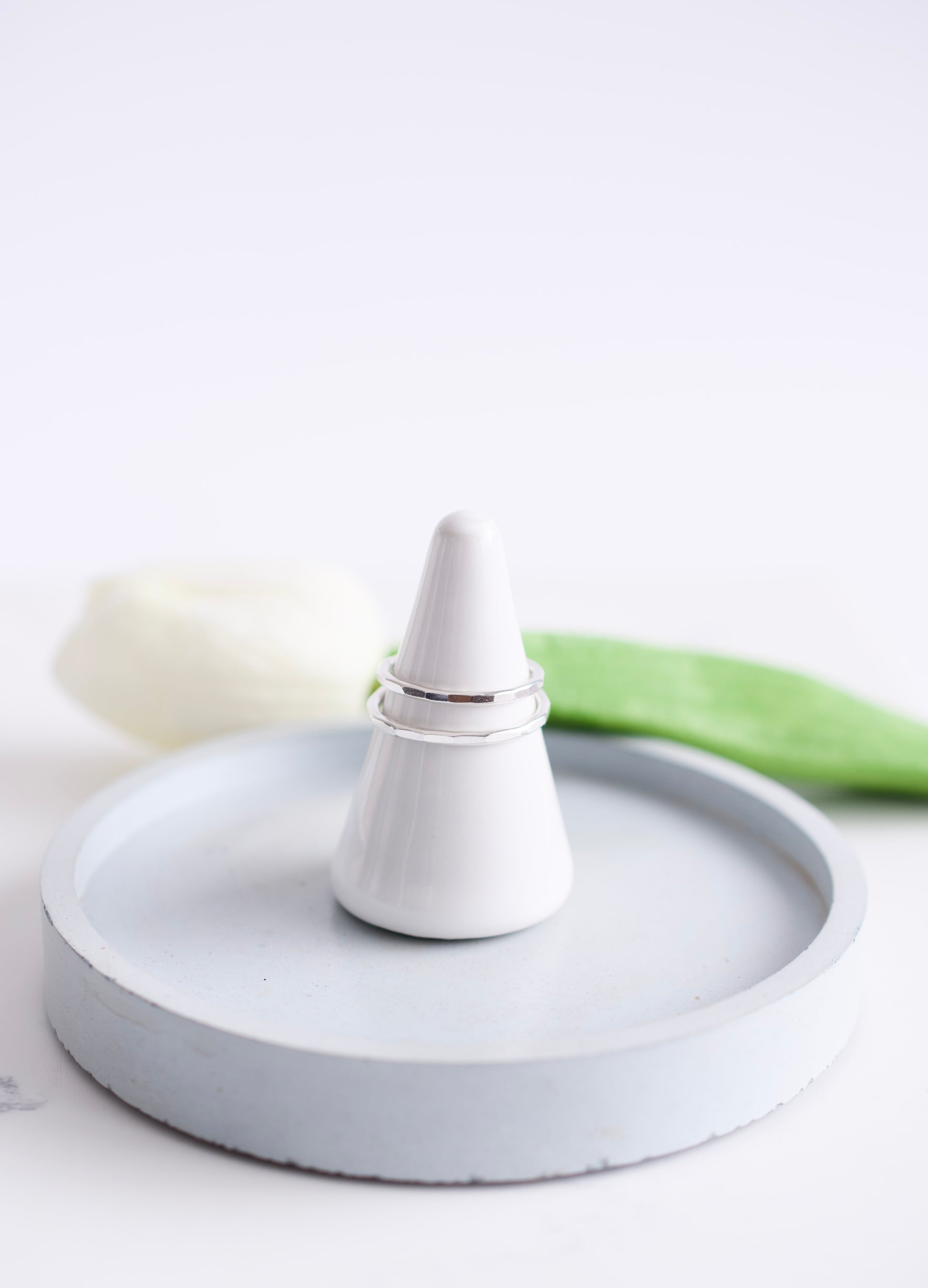 Bold yet minimal, this sterling silver hammered stacking ring catches the light with its unique texture. Wear it alone for a subtle statement or stack it for added dimension. Handcrafted with care for a timeless look.