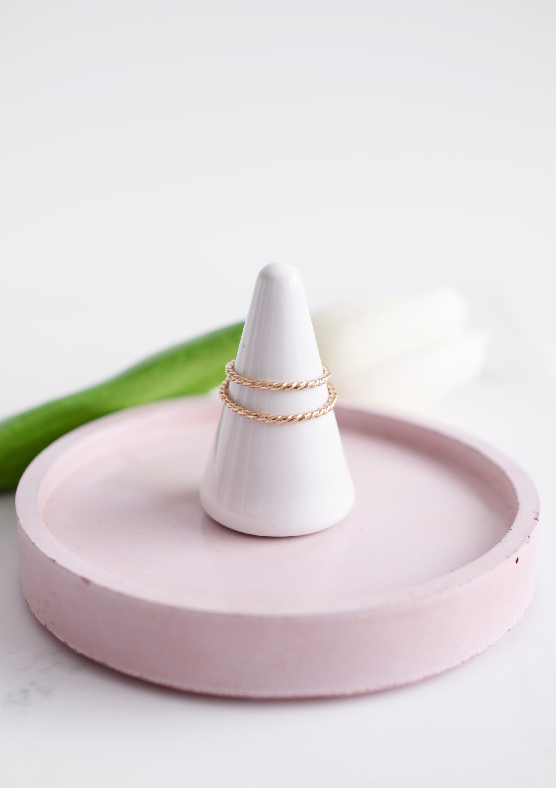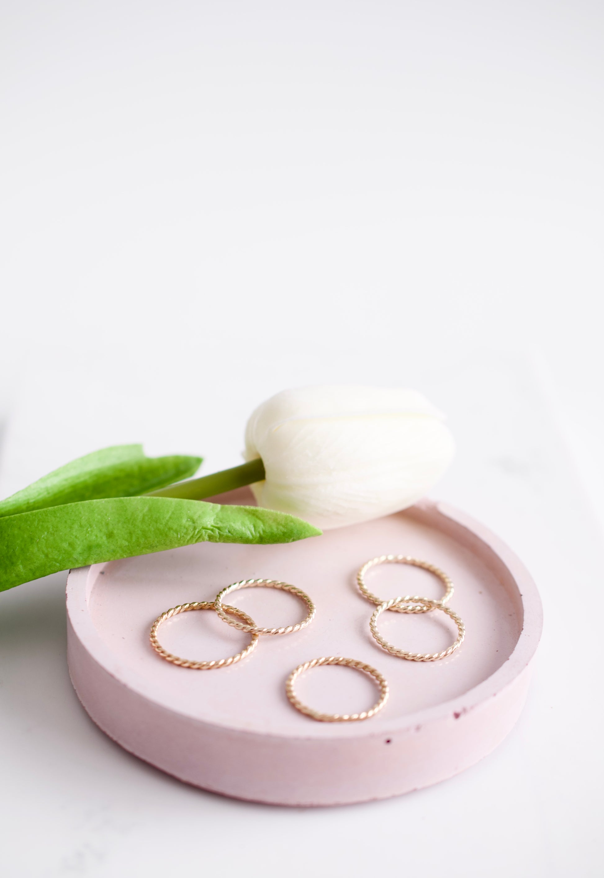 A timeless design with a subtle twist, this 14k gold-filled stacking ring adds delicate texture to any look. Wear it alone for a touch of elegance or stack it for a bold statement. Handcrafted with care for lasting beauty.